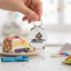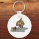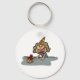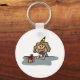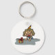 Uma aniversariante vestindo um chapéu de festa e tem um presente. Esta design parece realmente eficaz nestes Chaveiro