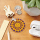 Um caleidoscópio brilhante em cores arrojadas de roxo, laranja e amarelo! Cartazes de design, porta-bocas, cartão de saudação, selo postal, chaveiro, cartões de visitas, t-shirts e muito mais!