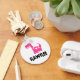 Dinossauro rosa bonito (e fofo) com manchas. O texto abaixo lê, Rawr!! Isto é muito fofo para qualquer fã de dinossauros.