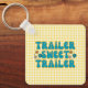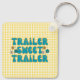 Chaveiro para aqueles que abraçam a vida do trailer! Texto do "reboque doce" aquático com flores adicionadas em fundo de harlequin amarelo