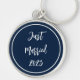 Chaveiro é mostrado em um marinho azul marcante com combinação branca, uma manutenção clássica para o casal. Fundo azul marinho com guião branco elegante. Personalize este item adicionando a sua própria data, etc.