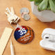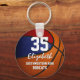 Este chaveiro personalizado de basquete para meninas ou meninos apresenta a imagem realista de uma bola de basquete que tem dois painéis coloridos — um vermelho e um azul — facilmente personalizados com o nome do jogador & número de camisa, além do nome da escola e nome do mascote - por katz_d_zynes