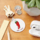 Um personagem de desenho animado de pimenta vermelho e quente. Design original. Editar texto para personalizar. Cadeias de chave personalizadas. Ideia do presente.