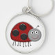Uma joaninha brilhante vermelha e preta sorrindo.