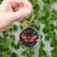 Uma mariposa Vermelha Vibrante ao fundo de um misterioso jardim noturno.