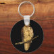 Esta chaveiro apresenta uma fêmea de Hawk de Altura Vermelha (Buteo jamaicensis). Um dos pássaros de presa mais disseminados e comumente observados na América do Norte, esse caçador feroz está empoleirado em um galho alto em algumas árvores verdes, esperando pacientemente que apareça uma refeição. Sua cabeça é marrom e a mama branca cremosa tem manchas castanhas. A cauda vermelha só é vista pelas costas.
