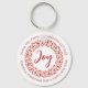Modelo de chaveiro de impressão unilateral de natal empresarial. Design moderno com coroa vermelha, letra caligráfica "Joy" e espaços reservados para o nome da sua empresa ou site e seu texto ou slogan de saudação. A curvatura e a largura do texto podem ser alteradas no nível de design. Muita alegria em doar © y.BEE PAPERIE