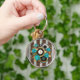 Chaveiro Relógio e Rosas de Turquesa em Striping