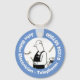 Keyring para negócios elétricos. Ilustração de reparos elétricos e eletrônicos em um estilo divertido de desenho animado. O homem está olhando para vários fios enquanto recarrega uma propriedade. Personalize-o com o nome e o número de contato da sua empresa.