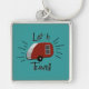 O design retro nesta corrente chave é reminiscente das propagandas do impressão do 50 e os anos 60 adiantados com um campista da lágrima no vintage vermelho e de prata e na frase "deixam-nos viajar!" De minha imagem digital criada do original.