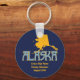 Que maravilhoso estar indo a um cruzeiro de reunião familiar para o Alaska. Crie seu próprio botão de cruzeiro do Alaska para todos os seus familiares. Monograma com o nome do navio de cruzeiro, nome da família e data do cruzeiro. Design apresenta o estado do Alasca. Cor do ouro azul e amarelo. Moderno e simples.