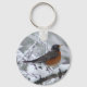 Este chaveiro apresenta um bonito Robin Americano na neve. Uma boa ideia para amantes de pássaros e observadores de pássaros.