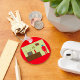 Um robô vermelho retrógrado numa sala de estar. Esta design parece realmente eficaz nestes Chaveiro