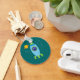 Esta ilustração fofa de foguete mostra uma espaçonave azul retrógrada divertida com sotaques verdes e um protetor para ver as estrelas! Esta adorável arte cômica é o presente perfeito para crianças que estão interessadas em astronomia e espaço!
