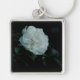 Uma fotografia de uma rosa branca solteiro floresce entre a escuridão da folhagem das folhas. Imagem Copyright ©2019 Kimberly J Tilley.