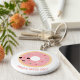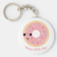 "Rosquinha" bagunça comigo. Brincadeira com palavras e uma rosquinha adorável com gelo cor-de-rosa e borrachas arco-íris.