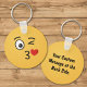 Um emoticon beijante. Um olho está aberto, o outro está piscando. Um coração é mostrado deixando a boca beijando.