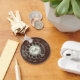 O antigo telefone de discagem rotativa na cor marrom com a palavra olá no meio do discagem.