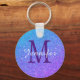 O Ombre Azul Roxo Glitter Esmaga Monograma Nome Chaveiro design de glamour Bonito no botão redondo chaveiro faz um presente de excelente ou ideia de favor para um aniversário, casamento ou qualquer ocasião. Modelo fácil disponibilizado para introduzir o seu próprio nome