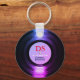 Imagem de um vinil-record roxo com nome e inicial personalizados, com as palavras 'deixe a música tocar'