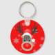 Engraçado design de uma rena de natal tenra Rudolf com chapéu de natal e vários flocos de neve. Ideal para feriados de Natal