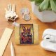Descrição única e fantástica das Ruas. Michael Archangel como cavaleiro medieval. Tempera e ouro no painel. Gonzalo Pérez, início do século 15. Um design elegante e clássico com um velho pergaminho.