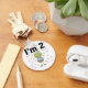Um adorável design de segundo aniversário em T-shirts, cartas, adesivos, ímanes, sacos de tote e mais com um sapo verde segurando um fosco azul e um texto que diz "Eu tenho 2".