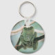 Um chaveiro com uma fotografia de um sapo verde giro a arrepiar-se num galho de árvore. Adorei a forma como ele está posando para a foto.