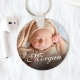 Crie o seu próprio chaveiro redondo personalizado com o seu nome de script de caligrafia bonito e fotografia de bebê.
