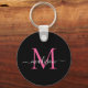 Chaveiro de Script Moderno Elegante Elegante de Monograma Rosa Magenta Preto Simples
