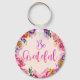 Bonito e feminina aliança-chave com borda cor-de-rosa e texto inspirador "Seja Grata".