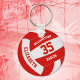 Este chaveiro de desportista de vôlei para raparigas ou rapazes apresenta um vôlei vermelho e branco de aparência realista, sobre o qual pode personalizar o nome do jogador & jersey number mais nome de escola ou clube e nome de mascote numa letra estilo de letra de varsidade - por katz_d_zynes