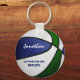 Este legal chaveiro do tema de basquete apresenta a imagem realista de uma bola de basquete que tem painéis coloridos azuis, brancos e verdes alternados - facilmente personalizados com o nome de atleta e a escola & mascot na frente e número de camisa no verso - por katz_d_zynes