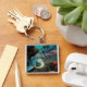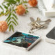Uma cena mágica debaixo do mar, uma sereia de cabelo aqua sentada numa rocha saúda um golfinho amigável. Este seria um presente excelente para qualquer um que ama as sereias.