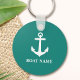 Seu nome de barco ou outro texto desejado com uma âncora clássica em uma cadeia de chaves náuticas.