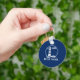 Náutica Seu nome de barco com um farol clássico em um Chaveiro azul.