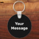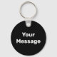 Front: You can create your own message in white text on this black keychain. Back: You can replace the display photo with a picture of your choosing.