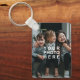 Adicione 2 das suas próprias fotos a esta corrente de chaves simples e moderna de dupla face.