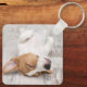Chaveiro simples e moderno com 2 fotos com o nome e a foto do cão na frente. O fundo tem apenas uma foto. Este chaveiro de fotos de animais de estimação fácil de personalizar é um presente de excelente para amantes de cães. Você pode alterar a cor do nome no nível de design © y.BEE PAPERIE