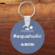 Adicione suas iniciais ou texto para personalizar este chaveiro divertido. presente de excelente para qualquer um que realmente goste de nadar. Fundo azul de aço com inscrição branca e pictograma de um nadador. #aquaholic.