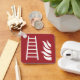 Escada de incêndio e ícone de chama em fundo vermelho. Texto personalizado no verso.