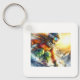 A female on a snowboard in vibrant gear races down a snowy slope, surrounded by vivid splashes of color. The dynamic scene captures the energy and excitement of the sport against a backdrop of a glowing sunset.
