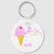 Sorria chaveiro de Sorvete. O chaveiro personalizável tem um cone de sorvete rosa de fusão fofinho com uma cereja no topo e a palavra sorri em letras cor-de-rosa.