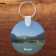 Cenário típico da Baviera: lago azul e céu sem nuvens, florestas e prados verdes e montanhas altas.