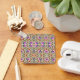 Square keychain showcasing a vibrant floral pattern with green leaves, pink and purple flowers on a beige background. The design evokes a cheerful, vintage feel.