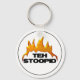 A estúpida queima! "O estúpido" está mesmo a arder hoje em dia, na política e noutros lugares. Certamente que deve ferir os cérebros de moradores afetados (sic). Imagem retrata as palavras erradas "O STOPID" cercadas por chamas laranja.