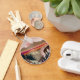 Uma paisagem abstrato com cores e texturas únicas mostrando uma paisagem natural com sol ascensão e dois gansos em tons de laranja, bege, marrom e rosa.