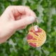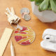 Um sol dourado e laranja se põe e o vento sopra nuvens vermelhas e rosa através do céu. Chaveiro com um design personalizável em ouro, laranja, vermelho, rosa e branco para personalizar com seu próprio texto, imagens e ideias. Um lápis de cor original e desenho de tinta metálica de Jess Perry.