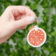 Uma fina fatia de laranja tangerina com sementes brancas. Uma fatia de boa saúde...