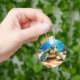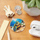 Vívida representação artística de uma tartaruga marinha com cores brilhantes nadando entre corais em uma cena submarina clara do oceano.